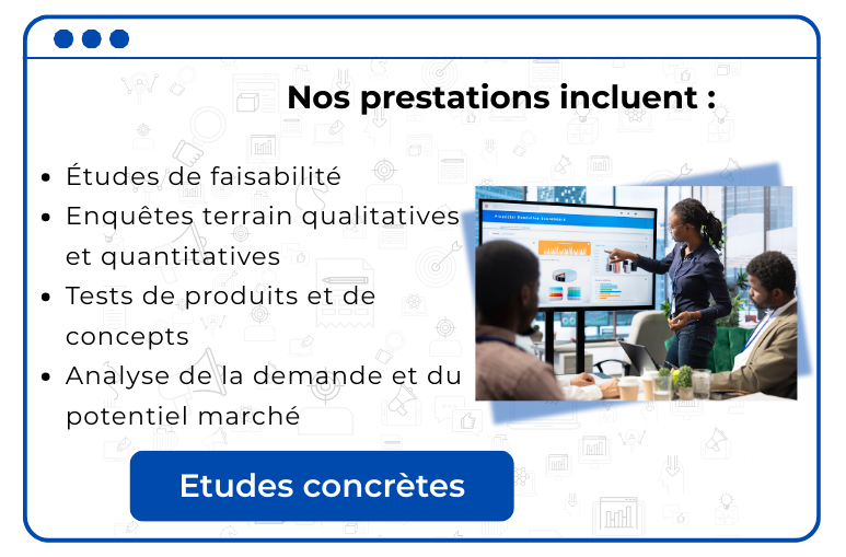 Nous réalisons des études fiables et adaptées à vos objectifs pour réduire les risques, valider vos projets et anticiper les évolutions du marché.